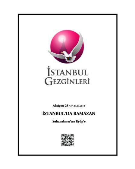 Aksiyon: 25 için hazırladığımız 27-28 Temmuz 2013 tarihli gezi kitapçığımızı aşağıdaki linkten inceleyebilirsiniz. Aksiyon: 25 / 27-28.07.2013 / İstanbul’da Ramazan: Sultanahmet’ten Eyüp’e / Link