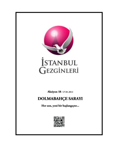 Aksiyon: 18 için hazırladığımız 27 Ocak 2013 tarihli gezi kitapçığımızı aşağıdaki linkten inceleyebilirsiniz. Aksiyon: 18 / 27.01.2013 / Dolmabahçe Sarayı: Her son, yeni bir başlangıçtır… / Link
